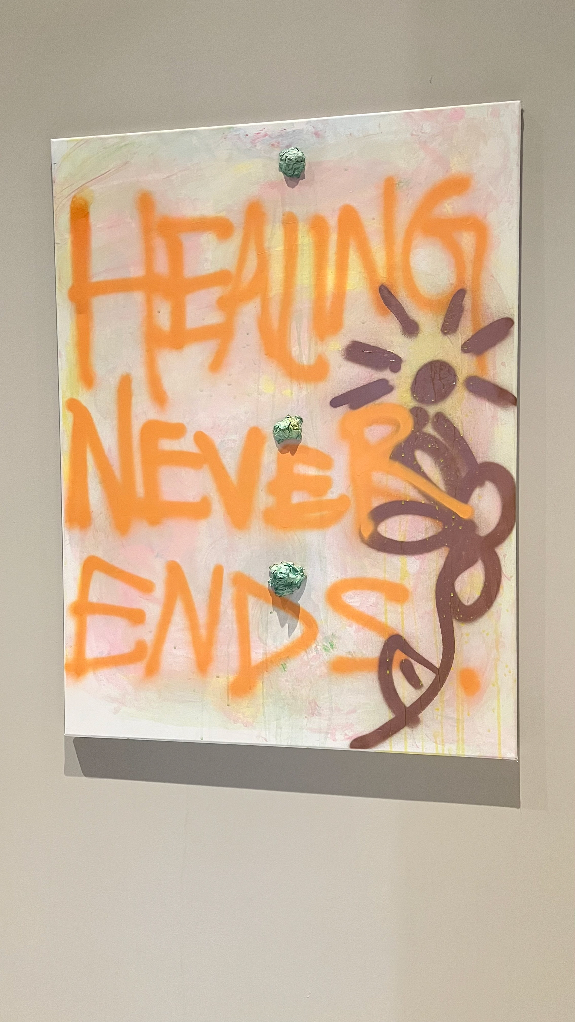 Acrylic paint, spray paint & paper towels on canvas