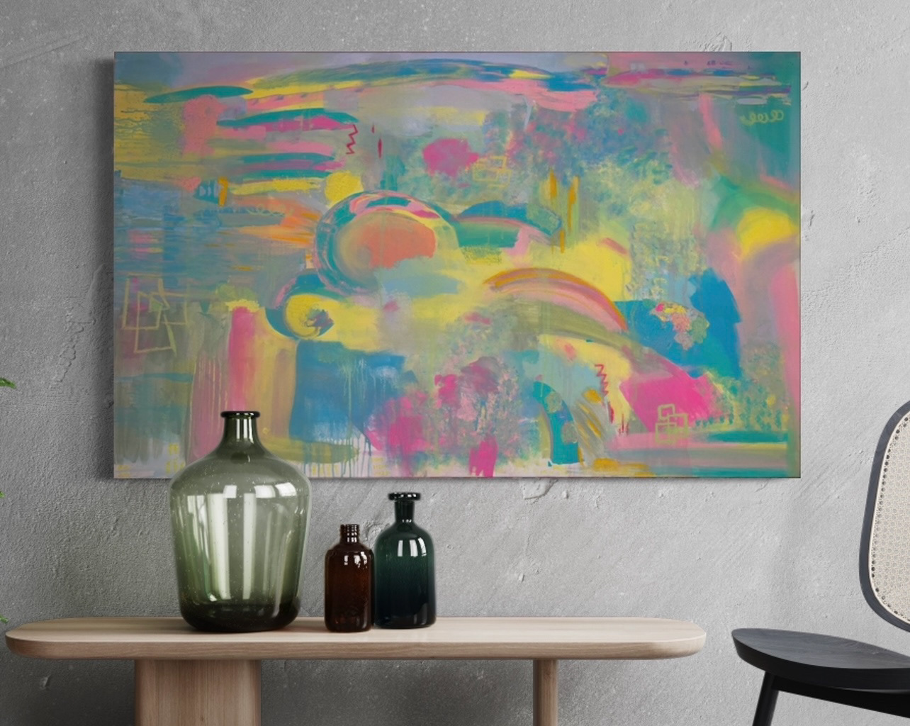 Acrylic paint & oil pastels on canvas