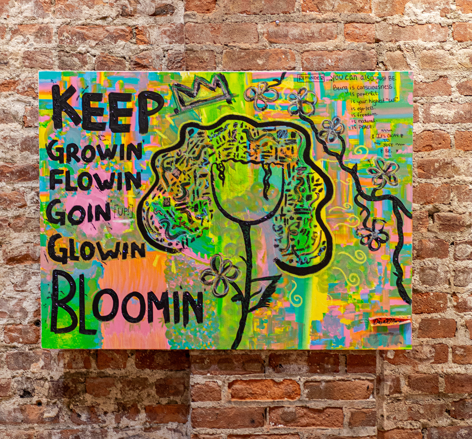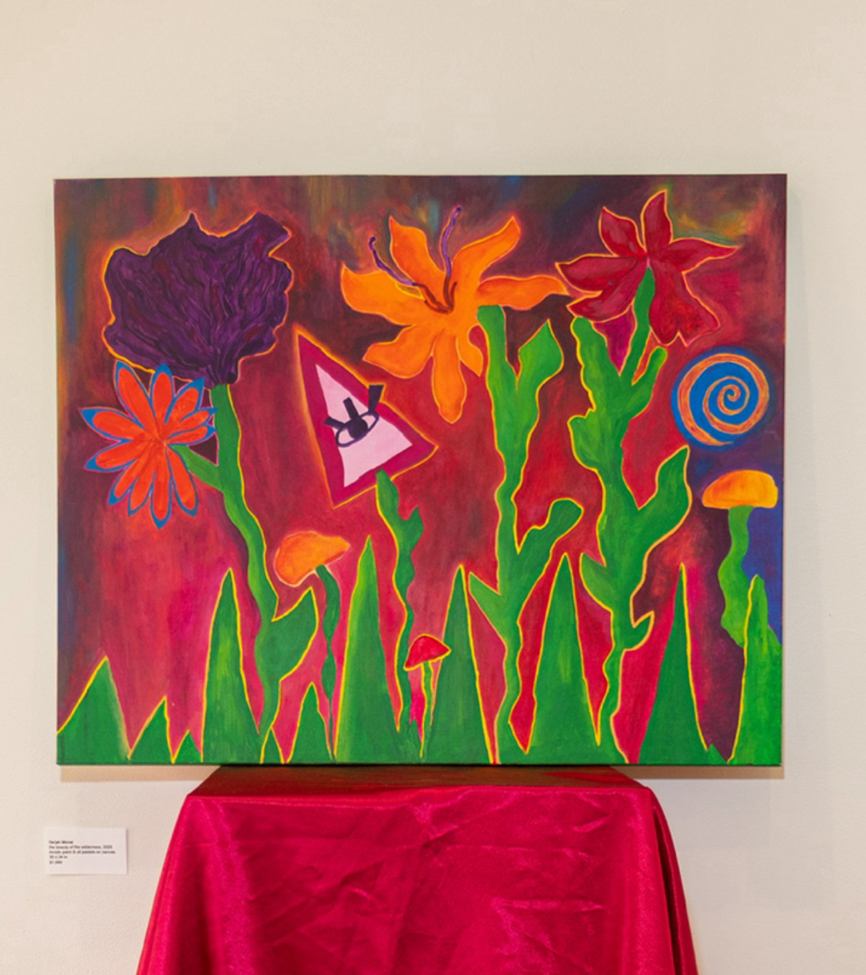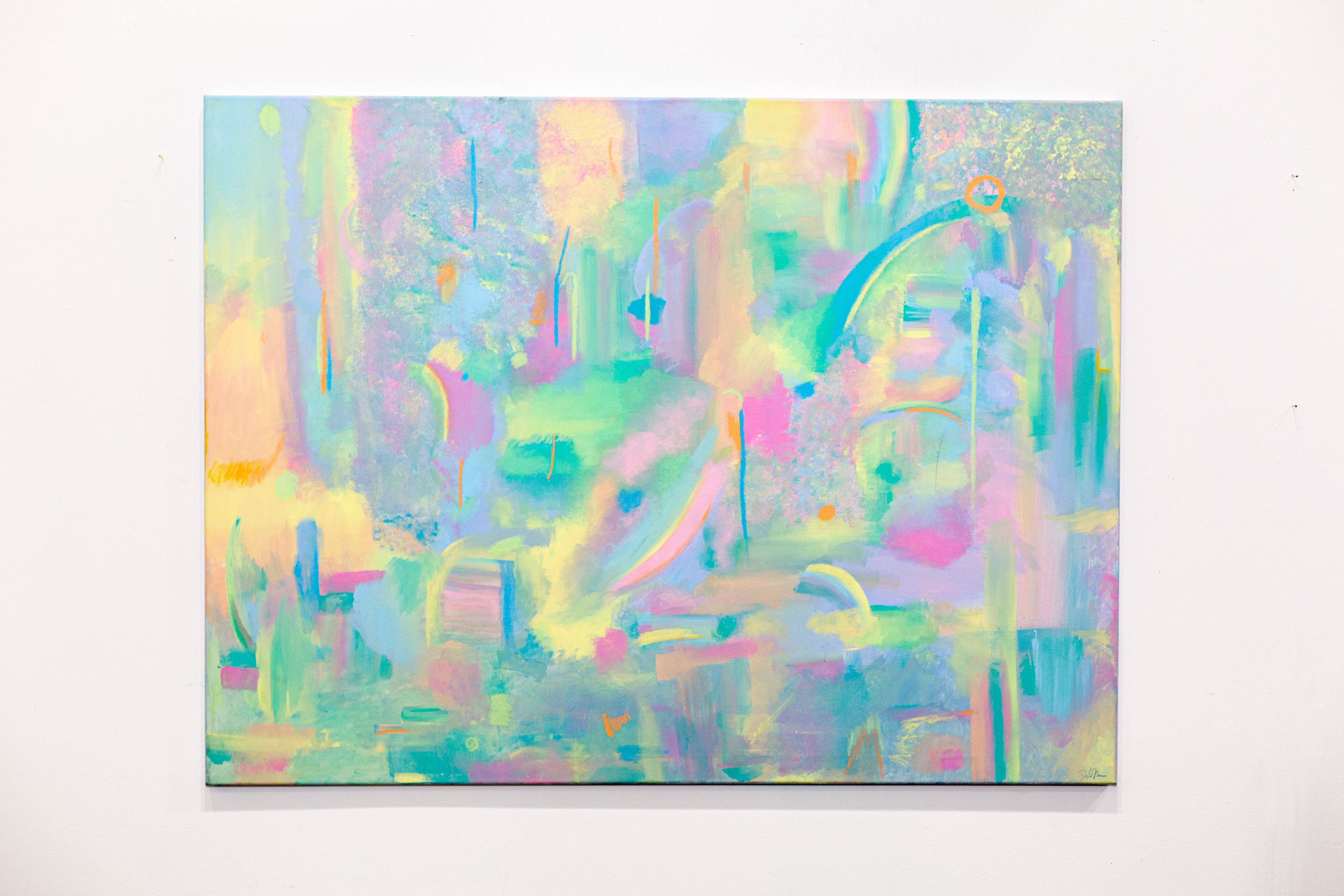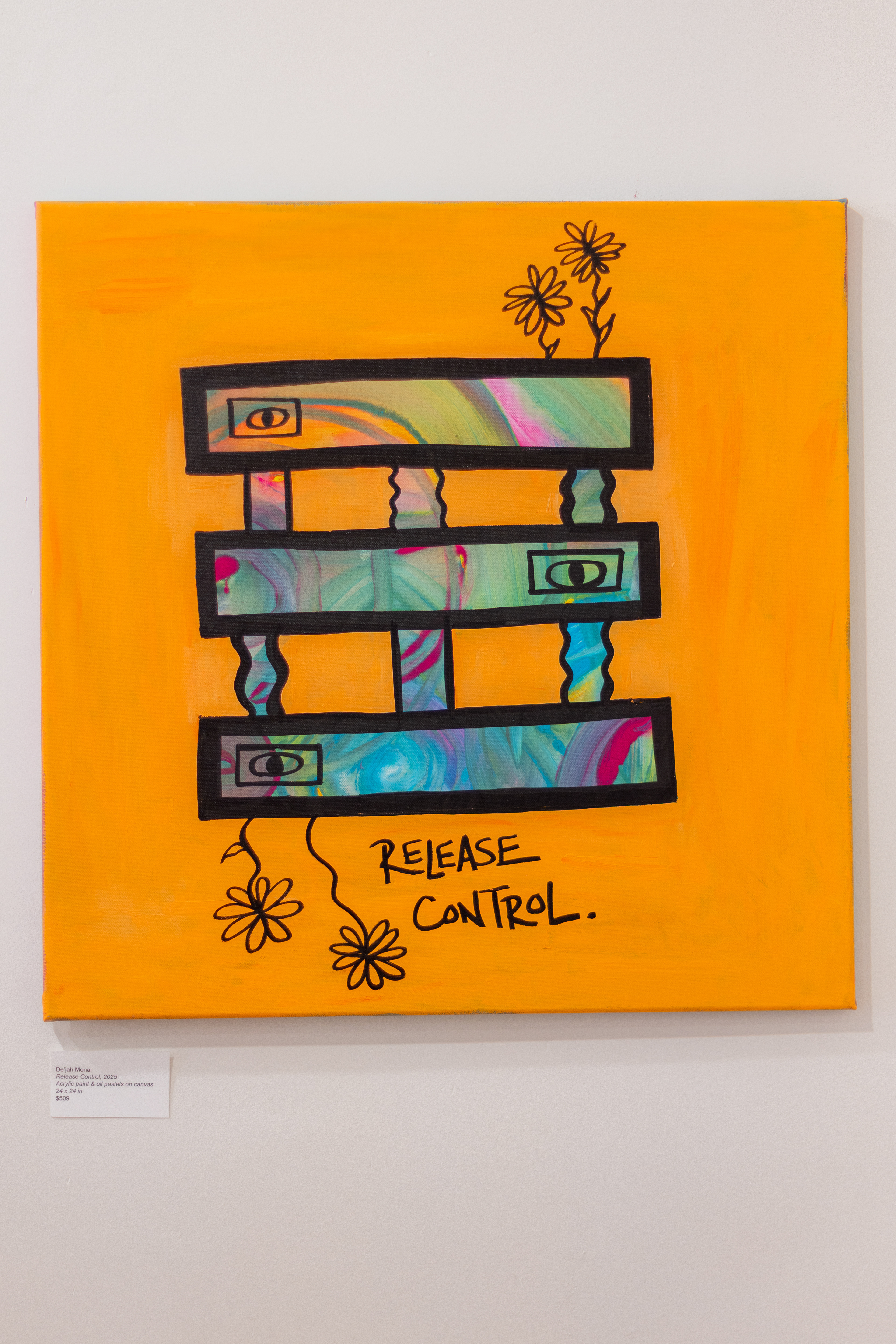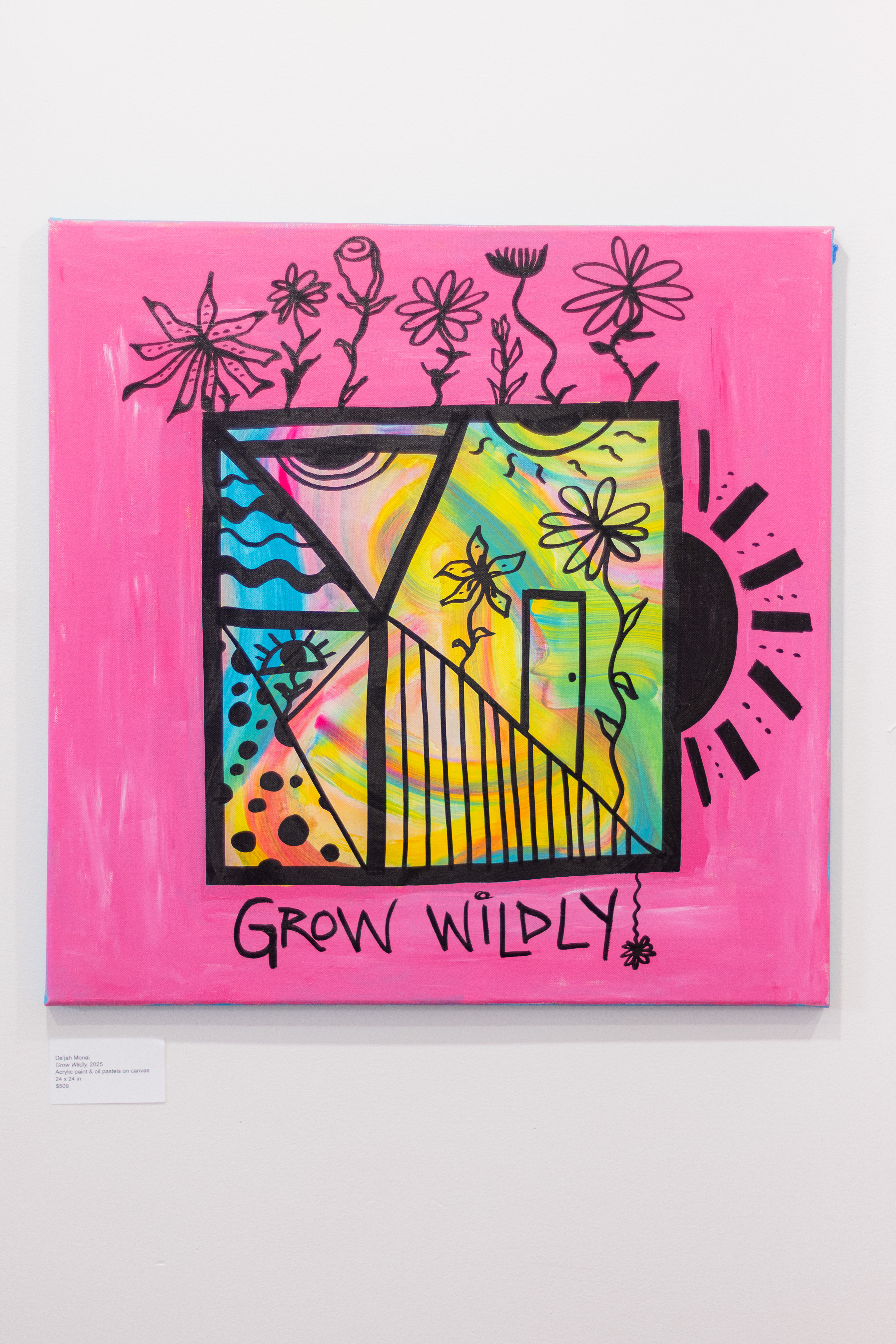 Acrylic paint, oil pastels, & paint markers on canvas